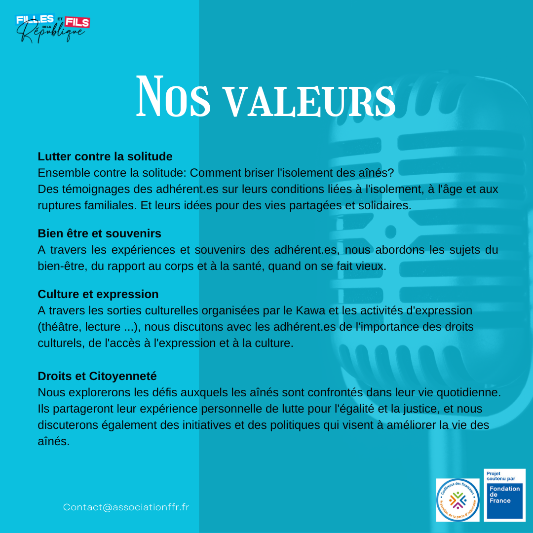Notre radio associative est un média qui se concentre sur les préoccupations des personnes âgées et les défis auxquels elles sont confrontées. Nous traitons de sujets tels que la santé, le bien-être, la sécurité financière, les loisirs, la famille et les relations, ainsi que toutes les autres questions qui touchent les personnes âgées.